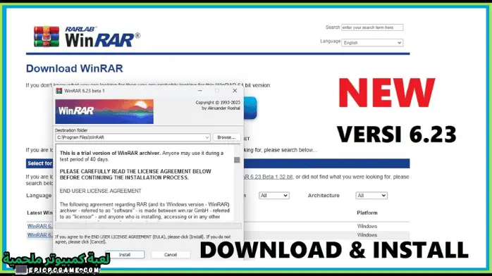 طريقة تفعيل تحميل برنامج Winrar 32 Bit: