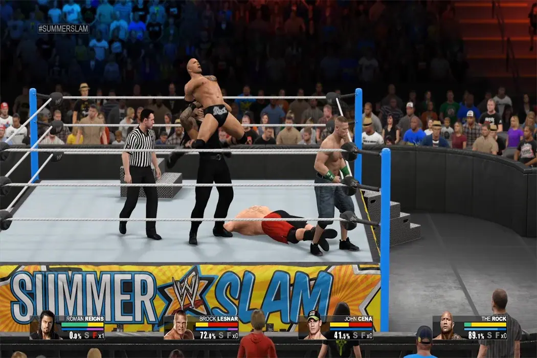 من الأمور المهمة هنا أن المصارعين تم اختيارهم من الحياة الواقعية، بحيث تمثل كل شخصية شخصية من الحياة الواقعية بكل تفاصيلها، فهناك شخصية جون سينا، وكذلك شخصية “ألبرت ديل”، وشخصية “سماكداون”، و”بيج شو”، و”سي إم بانك”، والعديد من المصارعين الأقوياء. تجمع هذه النسخة بين المصارعين والمصارعات، وتتميز كل شخصية بنفس القوة واستراتيجية اللعب التي تتميز بها الشخصية المنافسة لها، مما يعزز الواقعية.